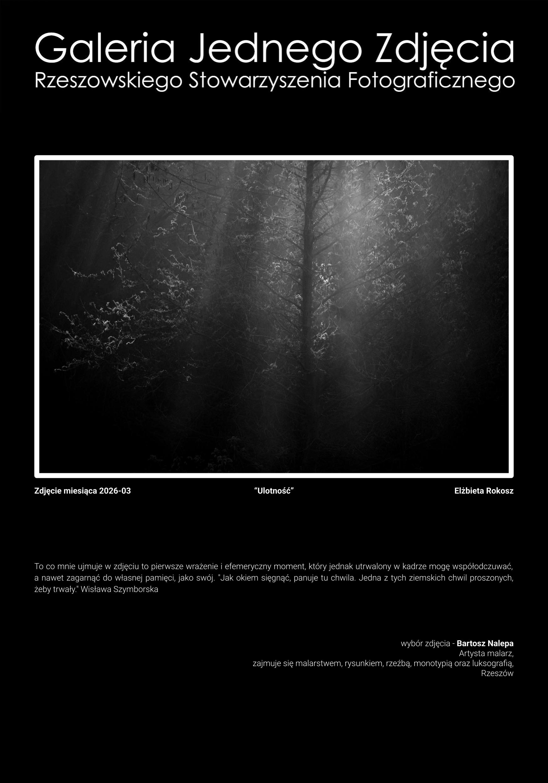 Do Galerii Jednego Zdjęcia, Bartosz Nalepa wybrał pracę Elżbiety Rokosz “Ulotność”.