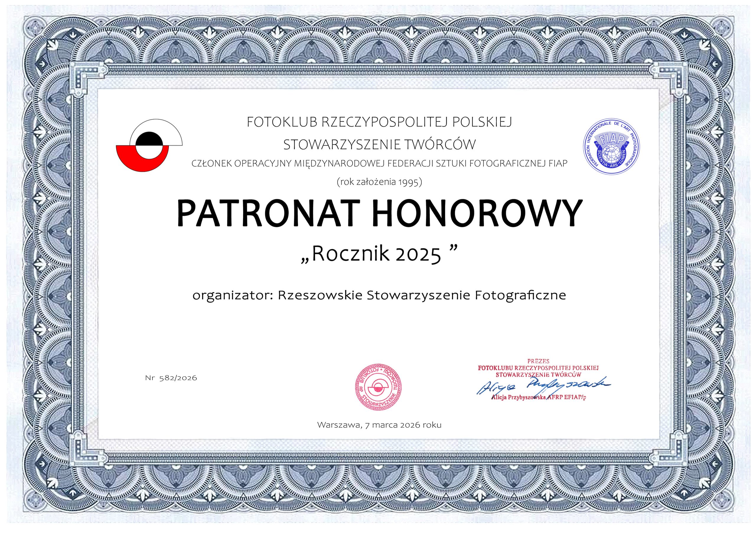 Wystawa została objęta Patronatem Honorowym Fotoklubu Rzeczpospolitej Polskiej – Stowarzyszenie Twórców.
